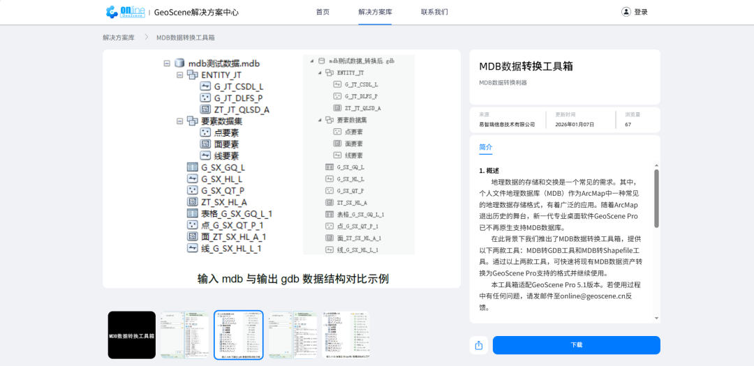 在此背景下我们推出了MDB数据转换工具箱,可快速将现有MDB数据资产转换为GeoScene Pro支持的格式并继续使用。