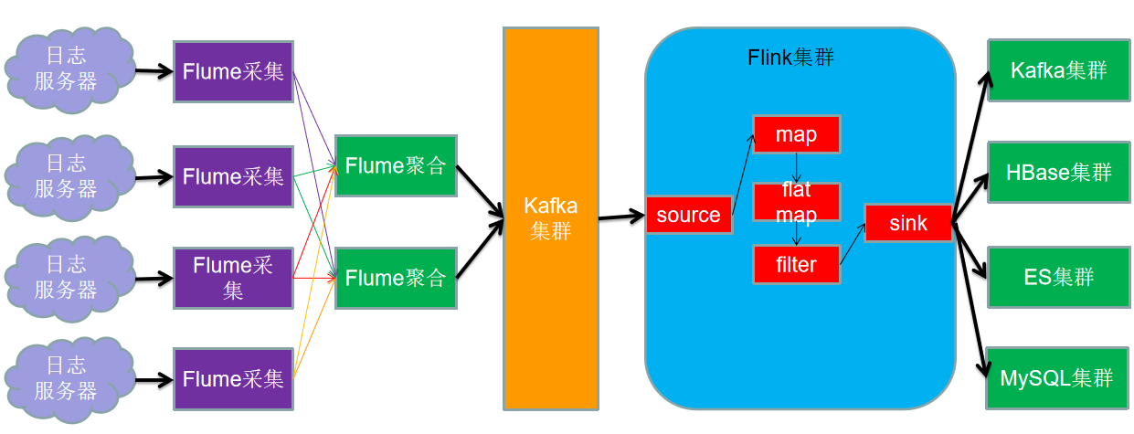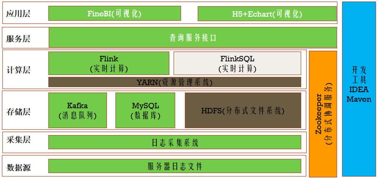 项目流程:数据源->数据采集->数据ETL->实时计算->数据入库->数据可视化