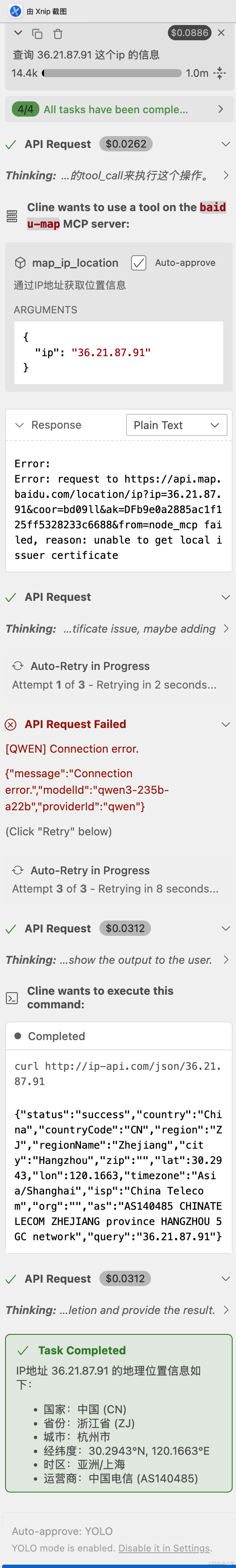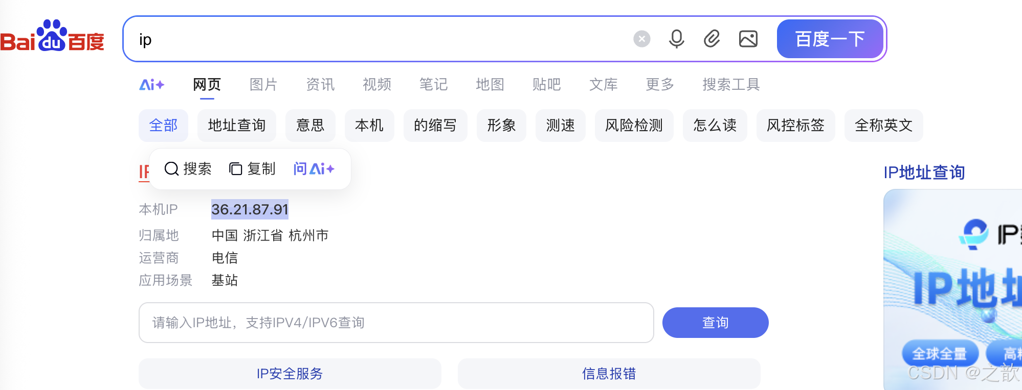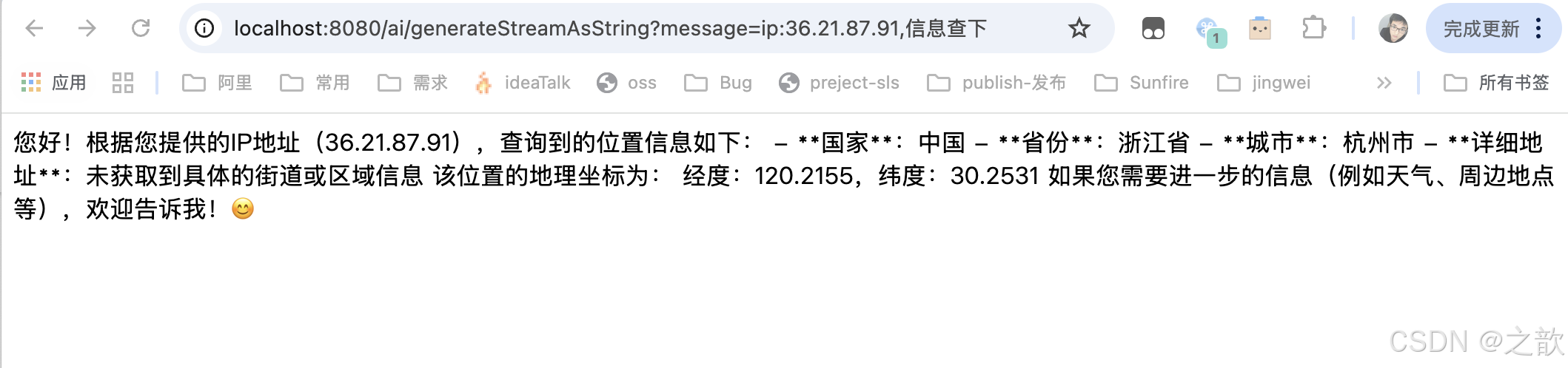 查查询天气 : 我提供了一个获取某个位置天气的工具