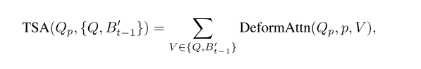 相对于之前的把历史多帧的特征图concat到一起的做法,时序注意力利用可变形注意力实现历史一帧做交互,计算更叫高效。