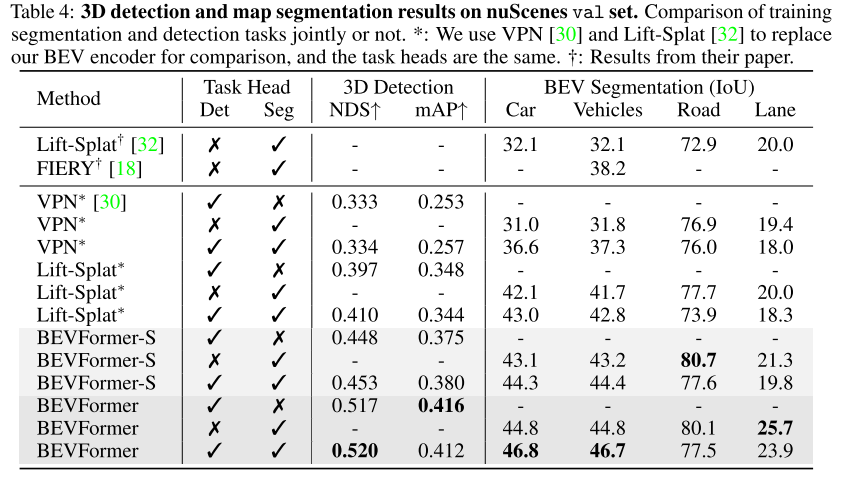 经过时序自注意力和空间交叉注意力得到的BEV特征图信息非常丰富,可以应用于各种各样的任务比如3D目标检测或地图分割。