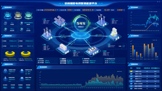 在实际运行中,智慧能源管理平台发挥着"中枢大脑"的作用。例如安科瑞电气股份有限公司开发的AcrelEMS智慧能源管理平台,能够实时采集光伏、风电、储能、充电桩及传统配电数据,通过算法优化实现功率协调与能量调配,促进新能源消纳,降低用电成本,提升系统整体能效。