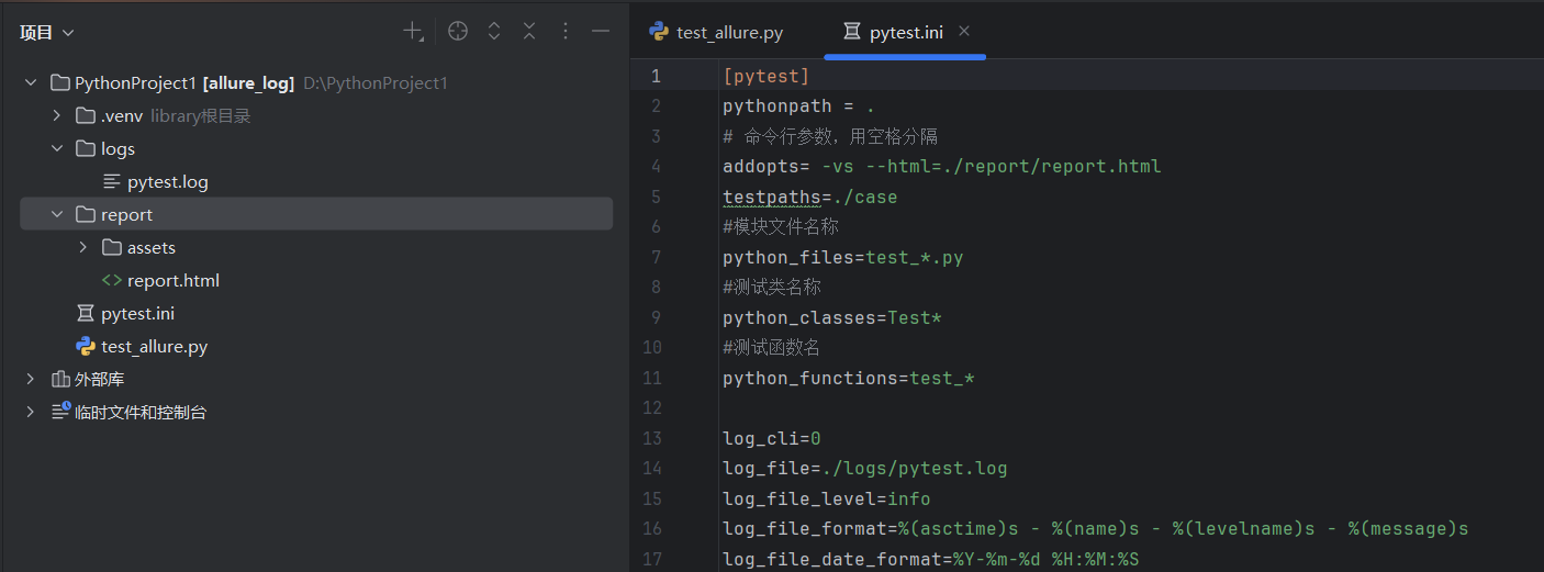 配置日志目录:log_file=./logs/pytest.log