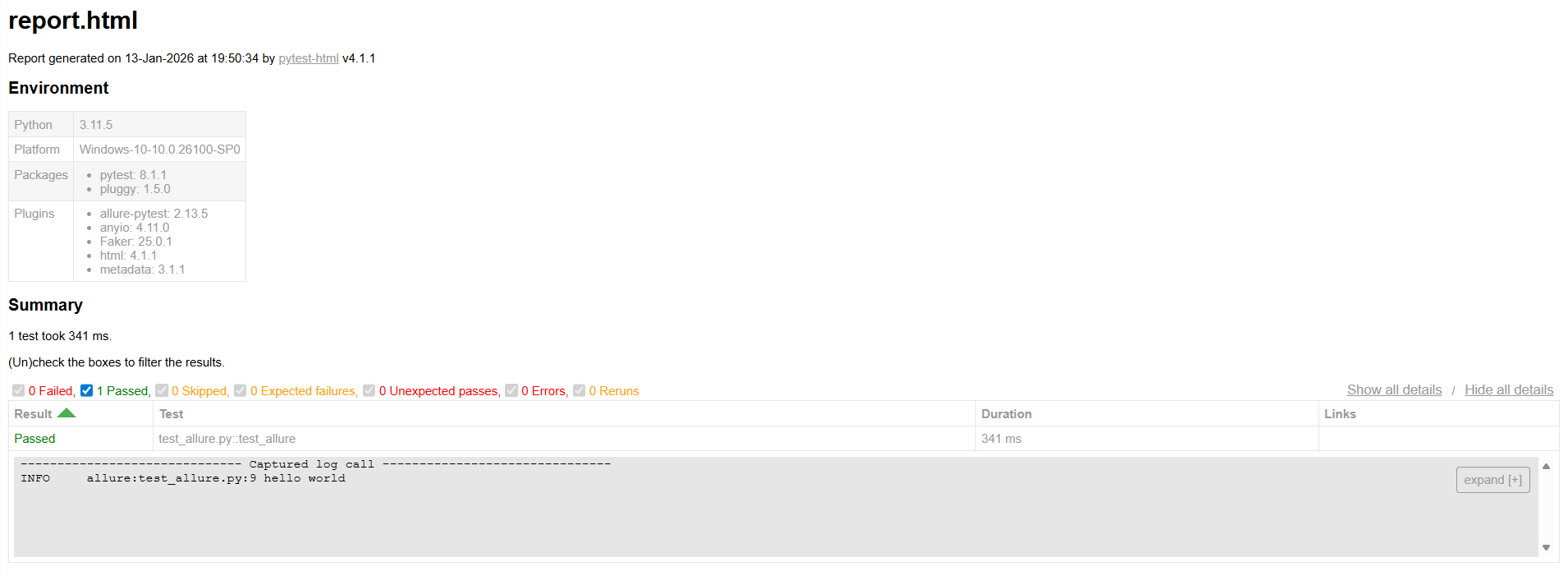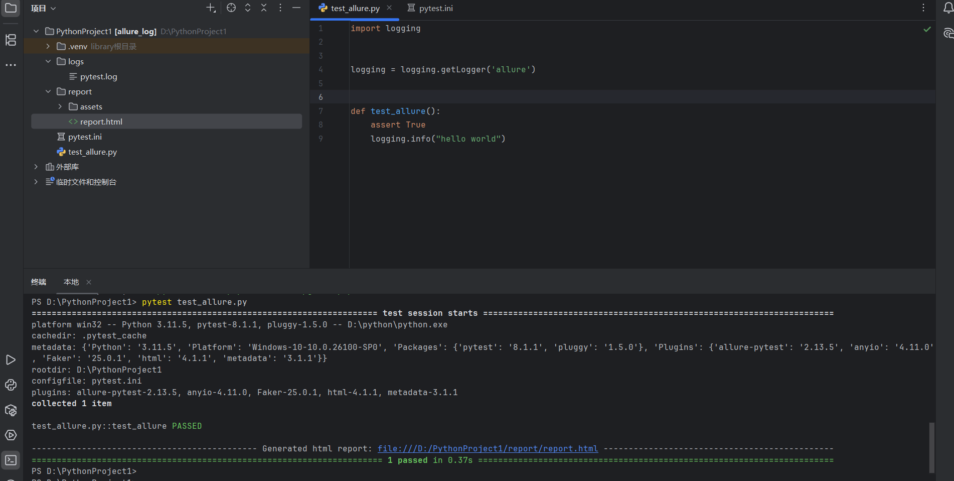 控制台运行pytest test_allure.py