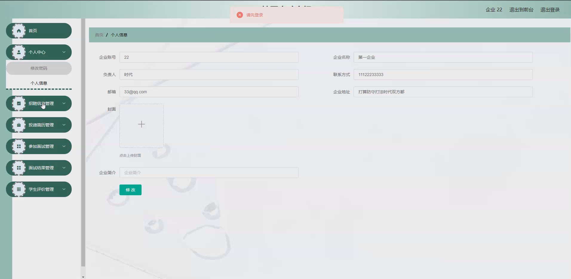 系统界面简约直观,按角色划分功能入口,操作流程贴合用户习惯(如学生一键投递简历、企业快速筛选简历);无需专业技能,三类用户均可快速上手,操作可行性高。