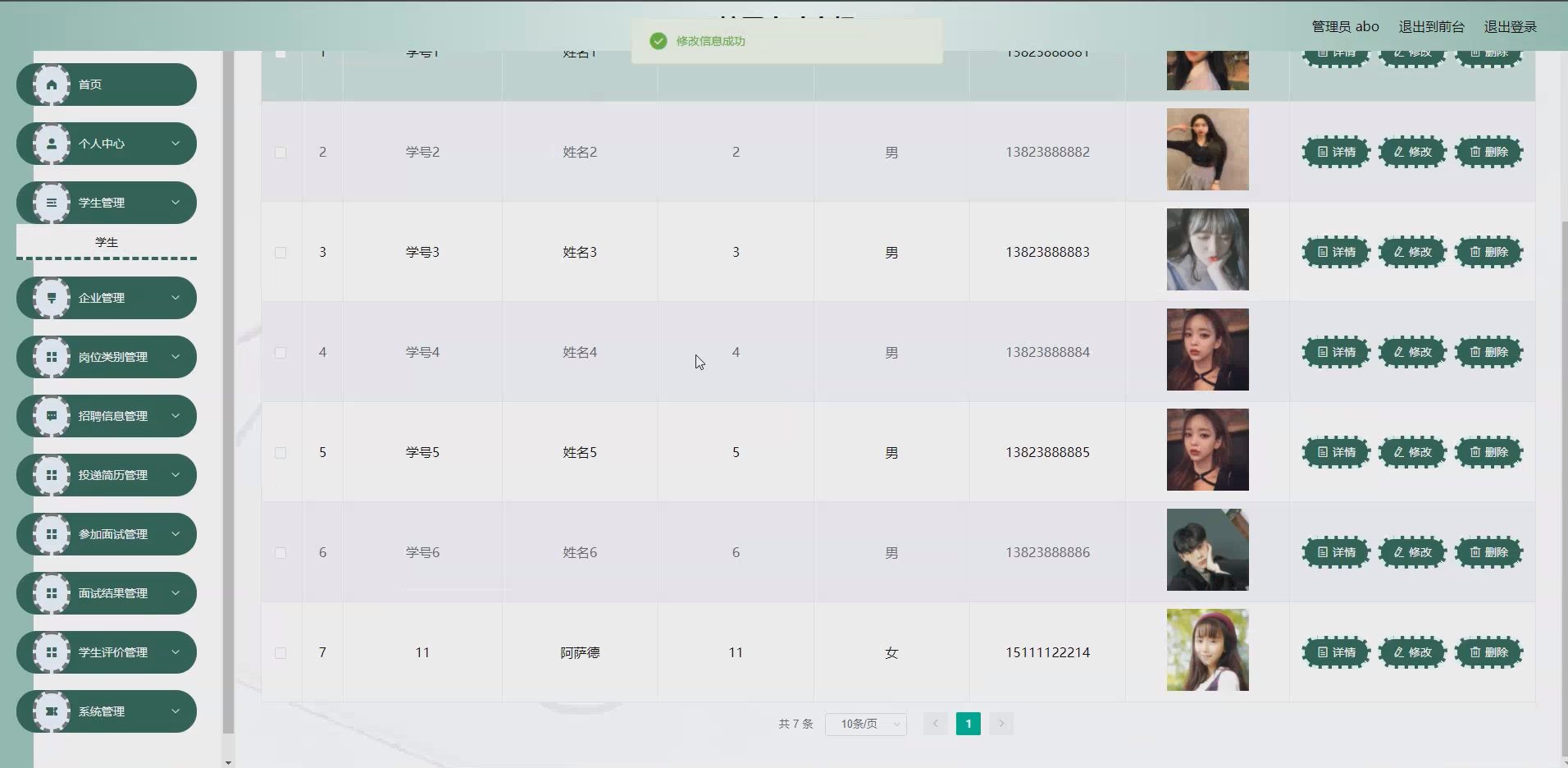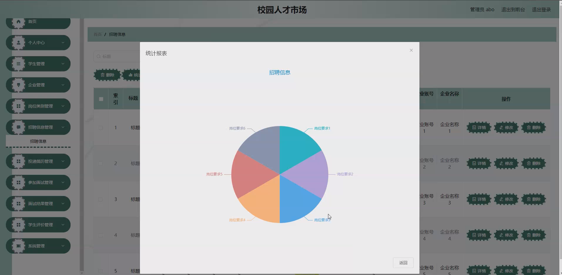 系统项目功能:学生,企业,招聘信息,岗位类别,投递简历,参加面试,面试结果,学生评价