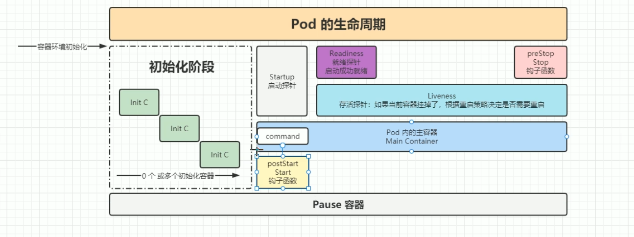 通过 Init 容器、钩子函数、探针等机制,Kubernetes 实现了 Pod 的 **"可控启动、可靠运行、优雅终止"**,保证应用在分布式环境中的稳定性与可用性。