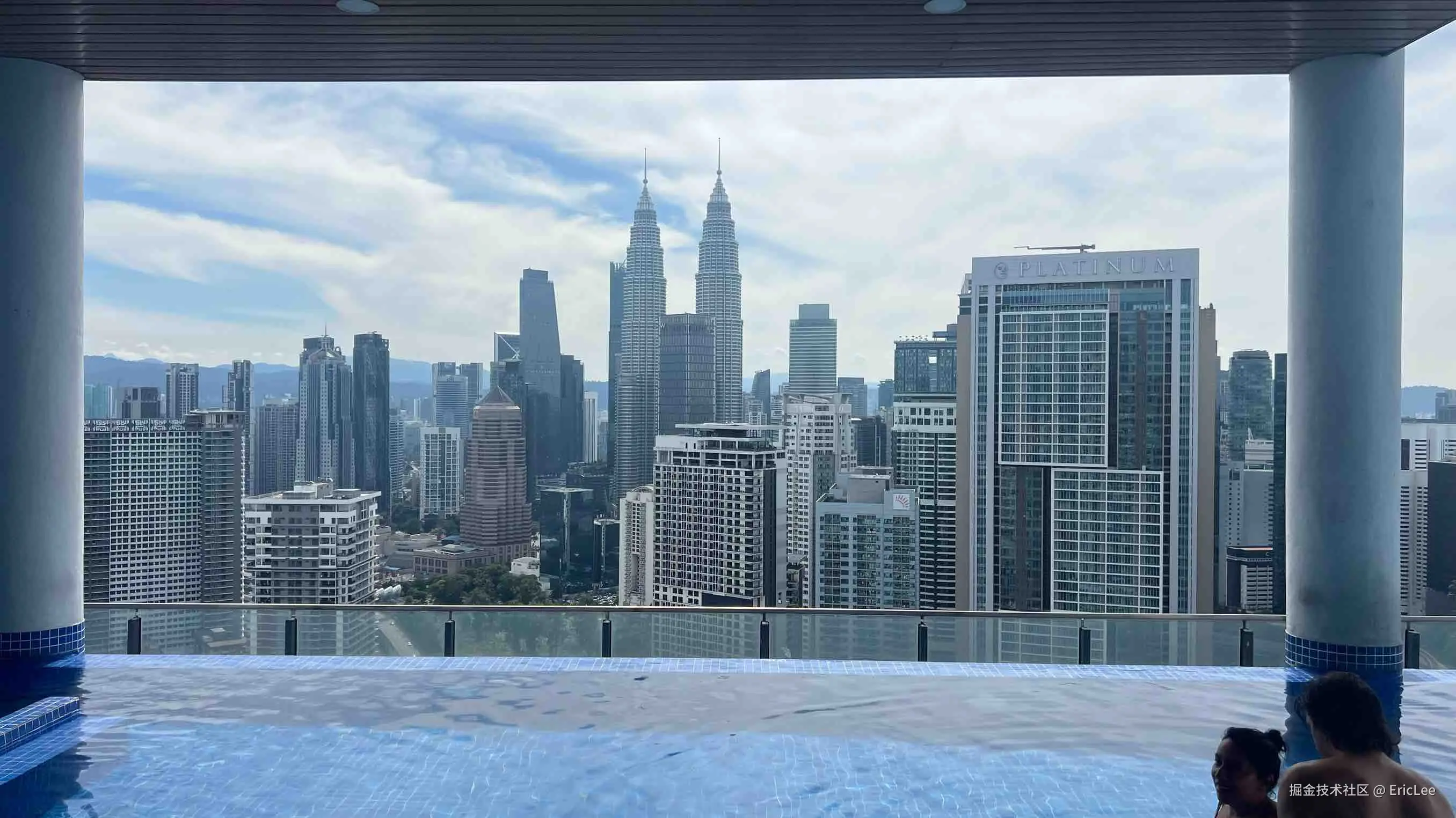 - 飞到吉隆坡的时候是晚上了,从上空俯瞰夜景其实就很震惊了,灯光看起来有点像东京那种特大城市的感觉。airbnb 上伊顿公寓的民宿很多,很多都可以在顶层的无边泳池在夜晚还有白天看双子塔。