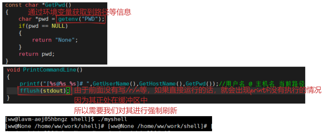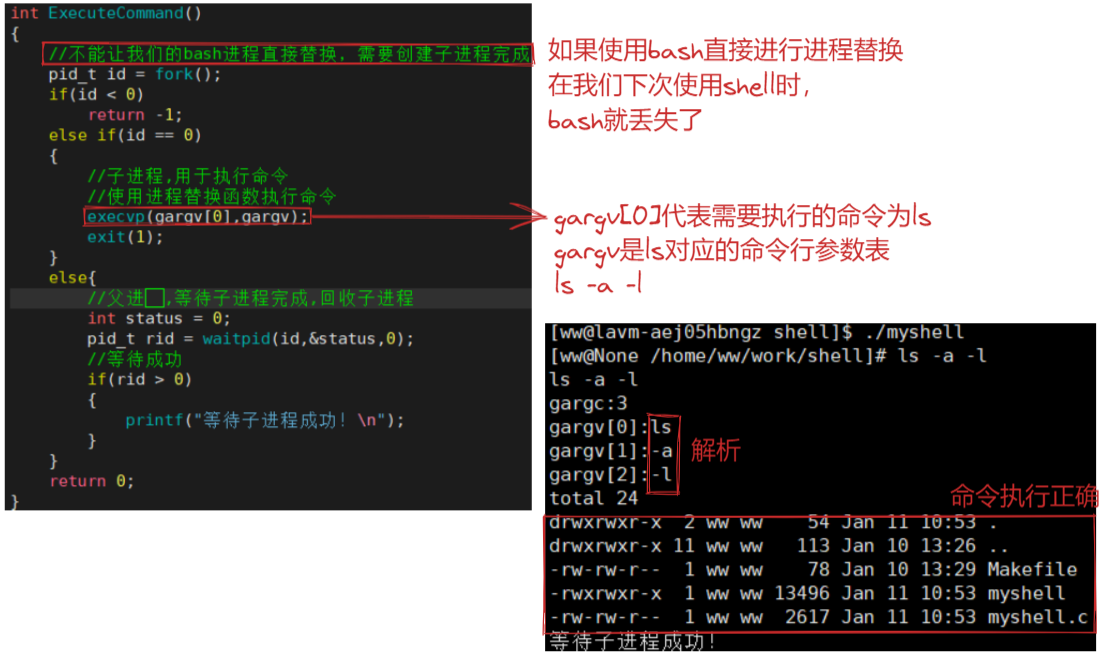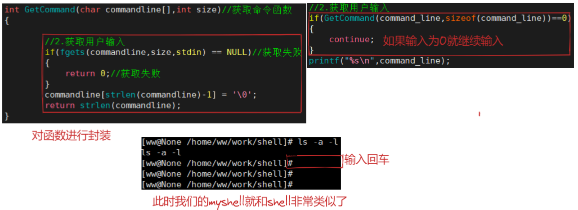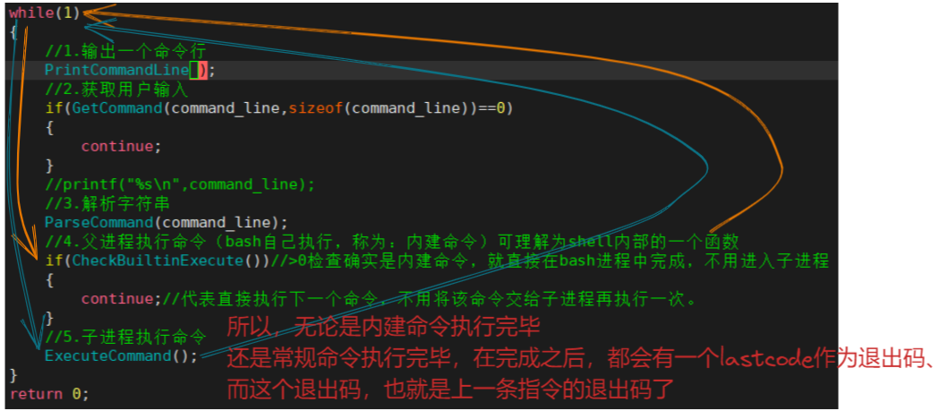 最终,我们就完成了我们自己的shell,通过完成自主shell的过程,我们可以更清晰地了解到:shell其实就是一个死循环的过程,其命令运行的本质也是进程替换!