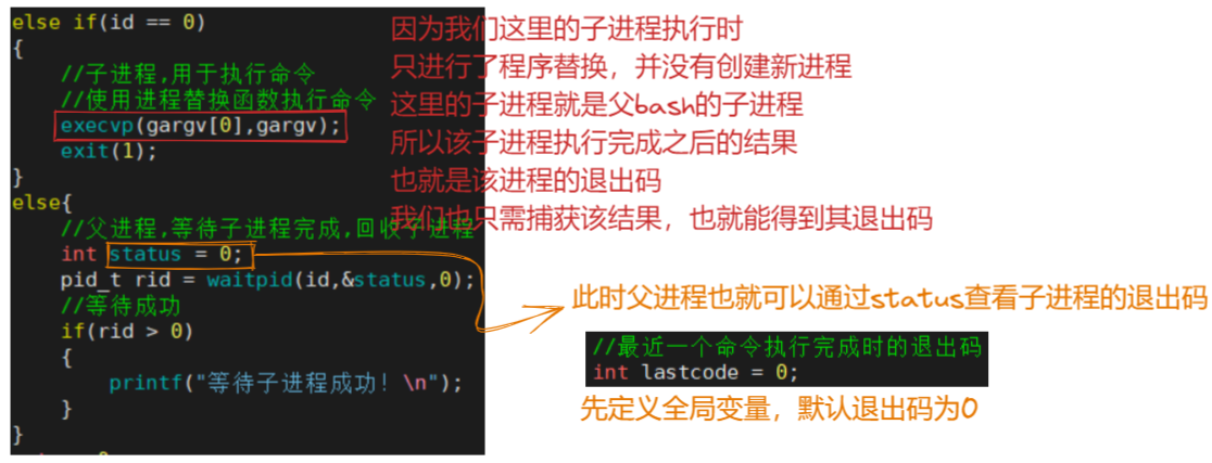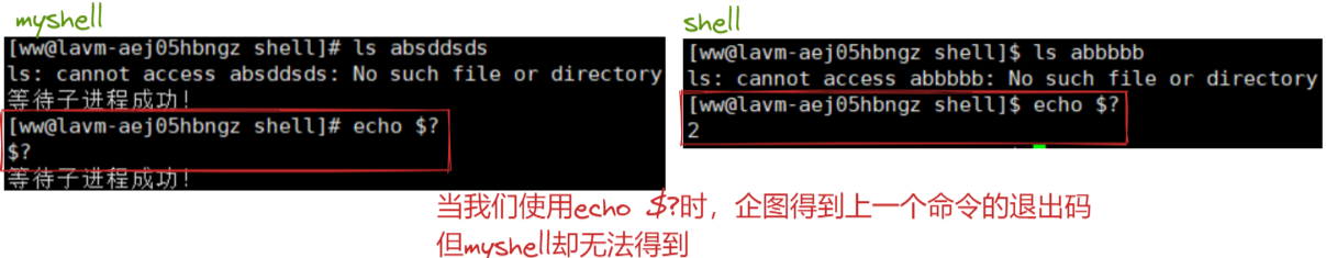 所以,接下来我们的目标就是让echo $?得到上一条命令的退出码!