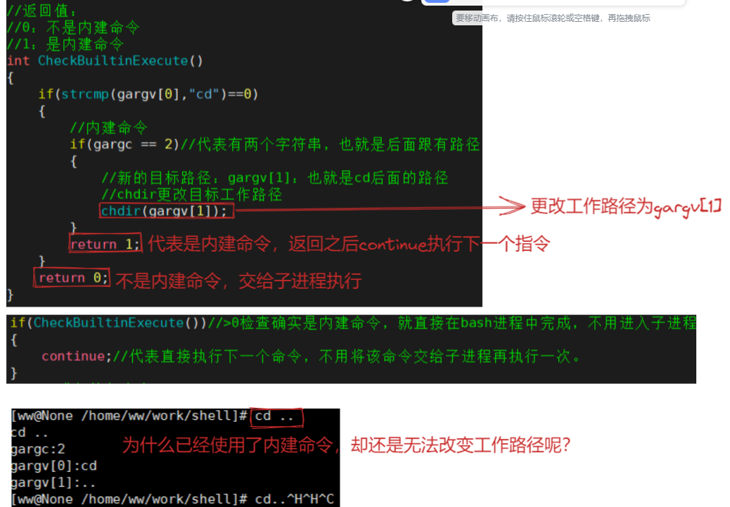 cd ..:路径切换指令,该指令切换的是父进程bash的路径,再经由bash传递给子进程,这样才能改变每个进程的路径,才能真正完成路劲切换。