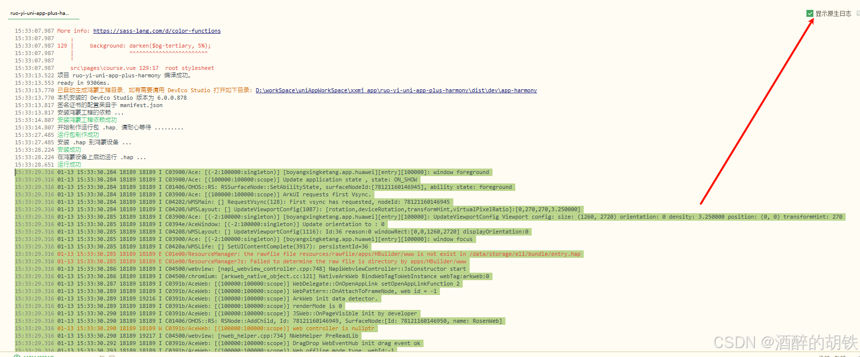 一定要打开显示原生日志才能看见具体报错,然后挨个解决
