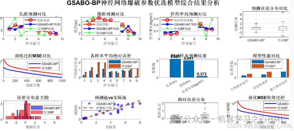 - 优势:GSABO优化的BP网络,预测精度和稳定性通常高于传统BP。