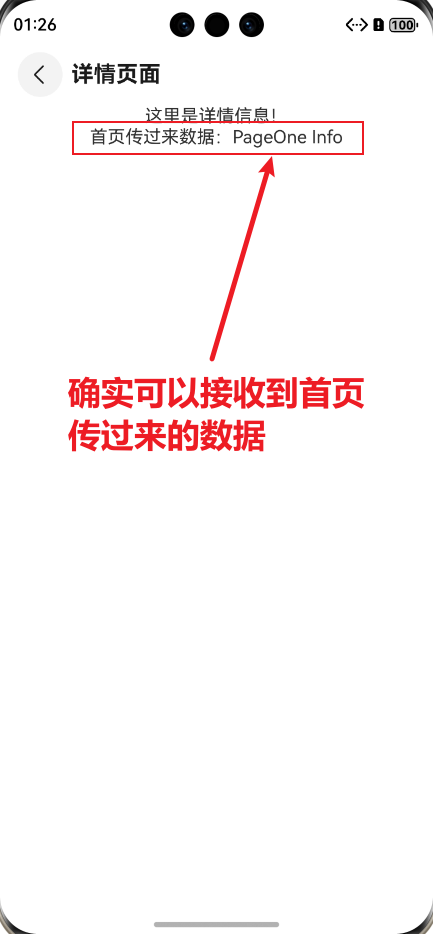 可以看到,确实可以在首页获取到详情页传递过来的数据,测试成功