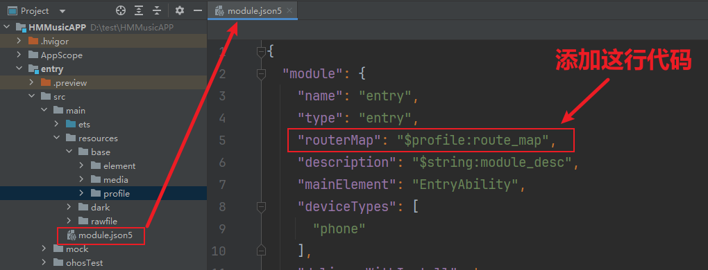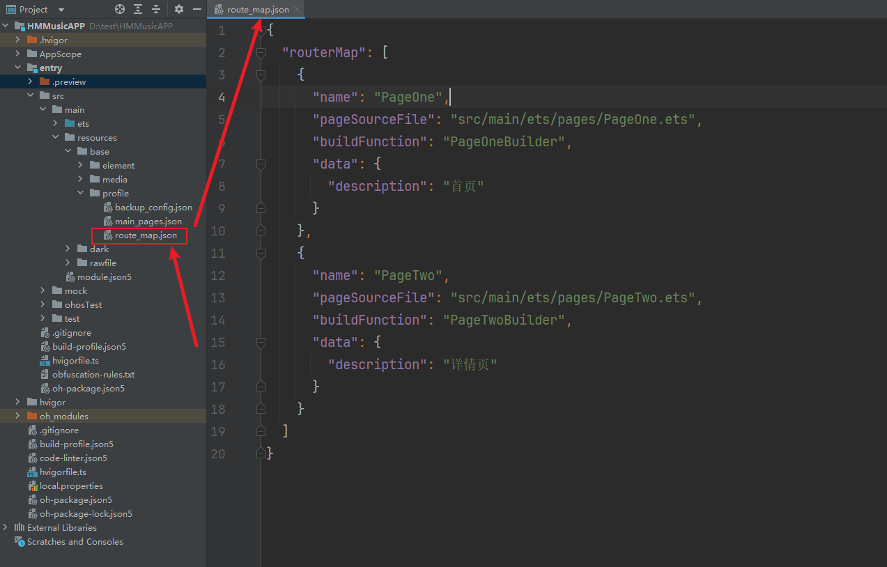所以我们首先需要在工程resources/base/profile中创建route_map.json文件。添加如下配置信息:
