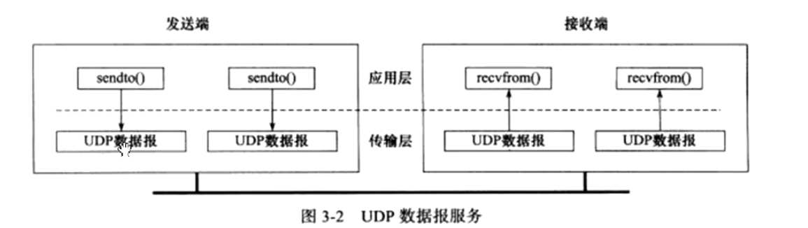 listen()/accept()/connect(),直接通过recvfrom/sendto收发消息。