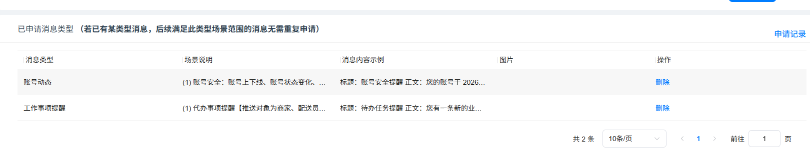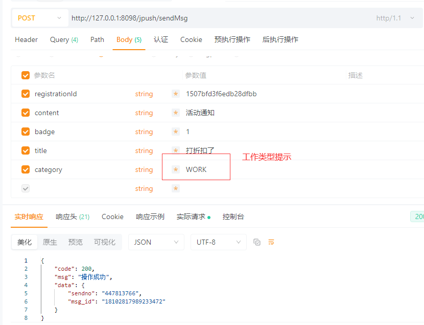 以上接口调用传递的消息类型为华为厂商:工作事项提醒,也就是申请的自分类权益*里面的内容。