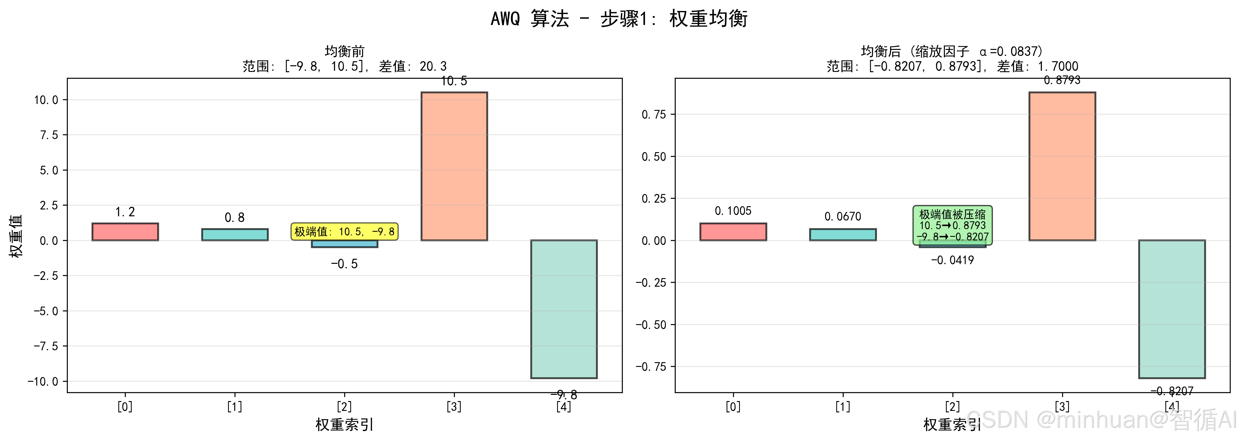 - 全局 Min-Max:被动遵循"全局规则",忽略权重分布差异;