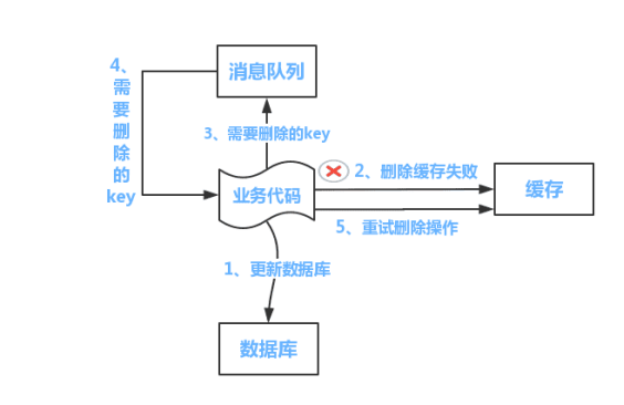 1.如果删除缓存失败,则进行重试,如果重试次数超过阈值,就返回给业务层报错