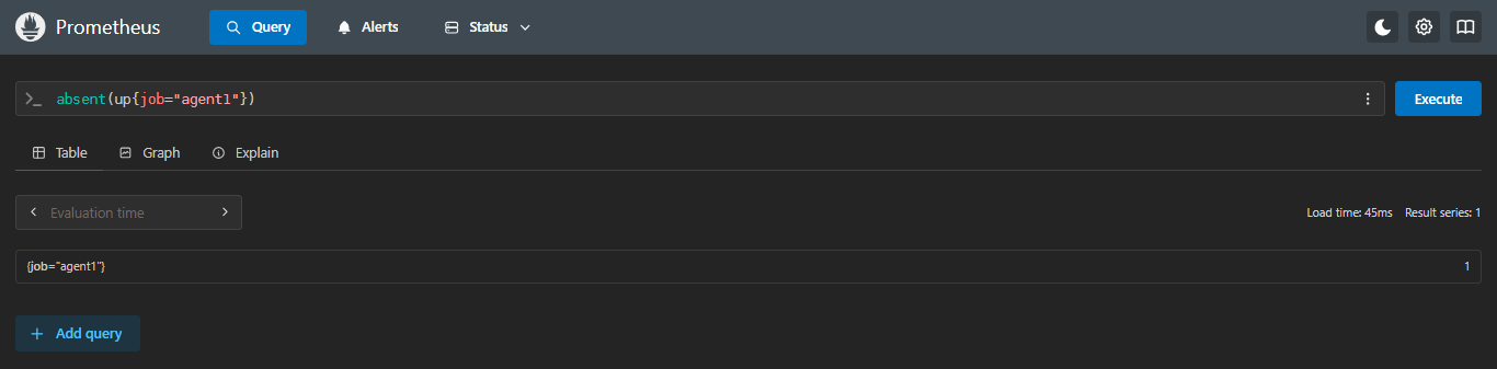 absent(up{job="agent1"})