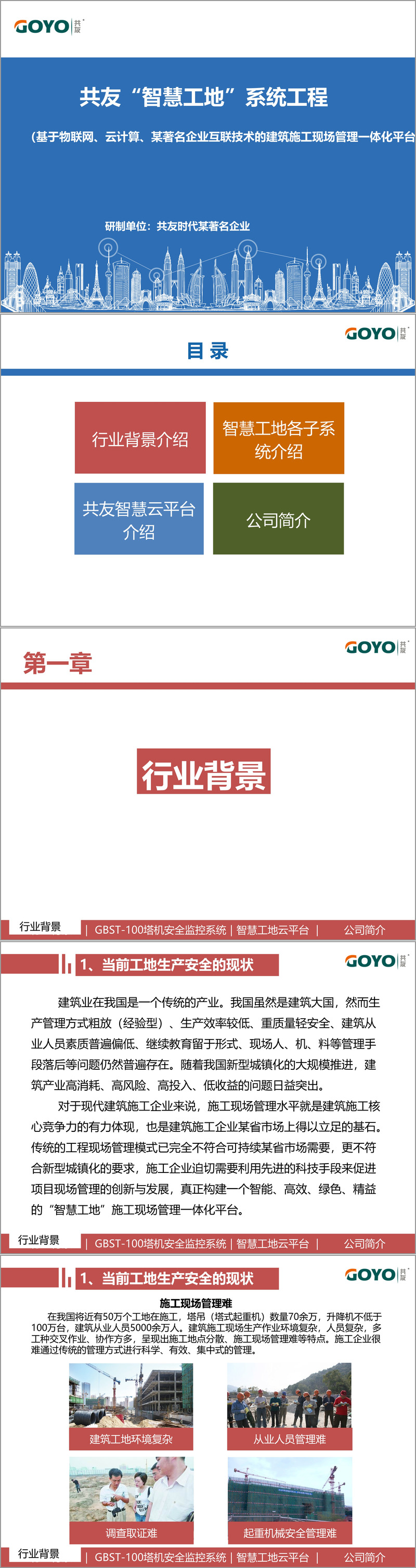 在我国城镇化快速推进的背景下,建筑业作为传统产业面临着管理粗放、效率偏低、安全风险突出等诸多问题。全国近 50 万个施工工地、70 余万台塔吊、100 余万台升降机以及 5000 余万从业人员的规模,使得传统管理模式难以为继。共友时代顺应行业需求,融合物联网、云计算、大数据等先进技术,推出 "智慧工地" 系统工程,为建筑行业带来了一体化的现场管理解决方案。