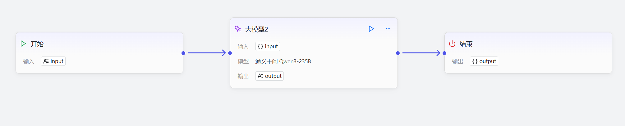 在 openJiuwen 的 "工作流编排" 模块,搭建 "开始→大模型(通义千问)→结束" 的流程:将 "大模型" 节点的模型选择为 "通义千问 Qwen3-235B",配置输入输出参数,实现请求的流程化传递与响应输出。