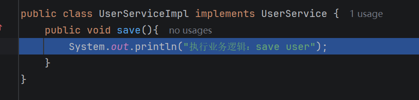 System.out.println("执行业务逻辑:save user");