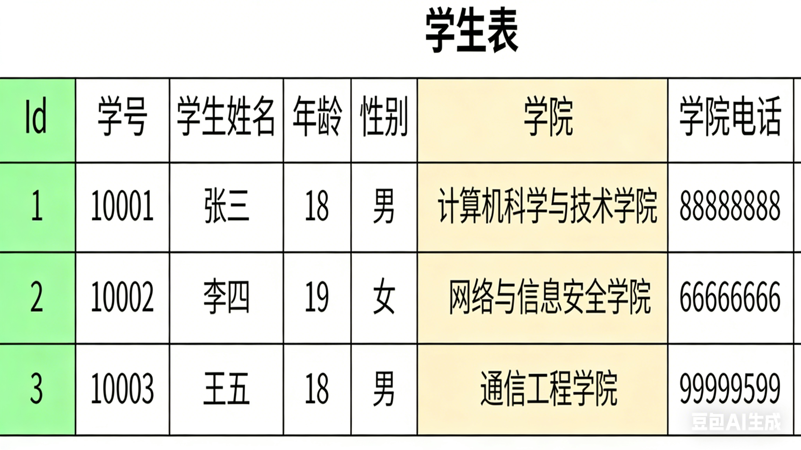 # 学生表