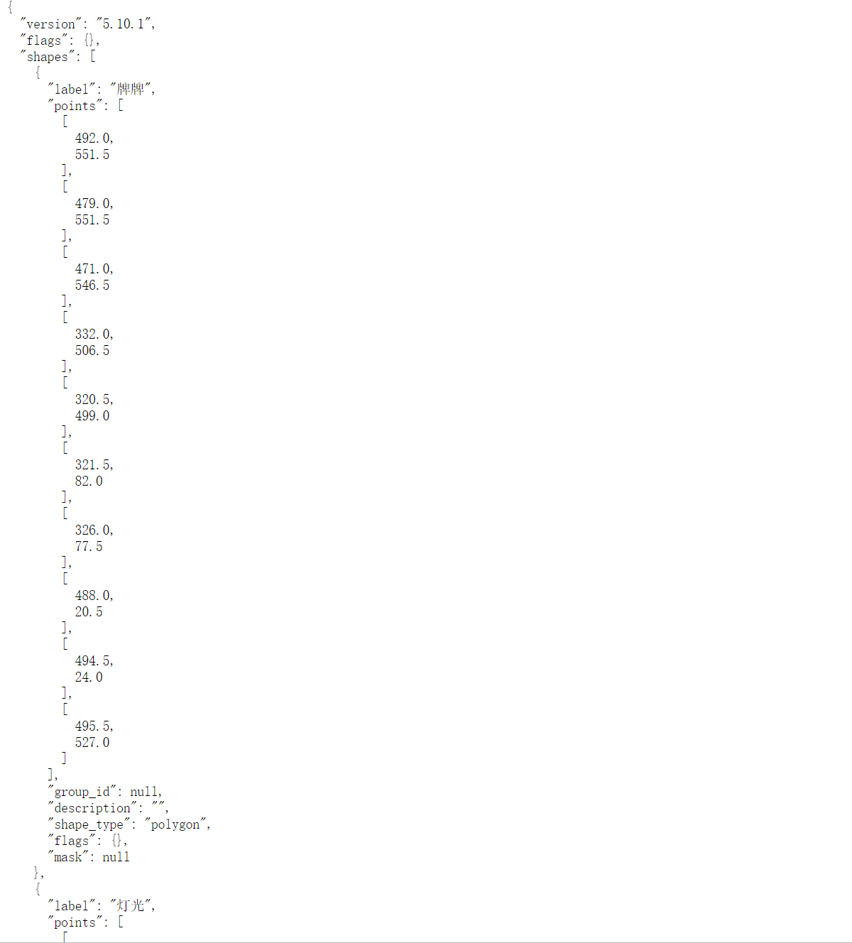 - 默认输出为 JSON 格式,包含图像路径、图像尺寸、每个标注对象的标签和多边形顶点坐标。