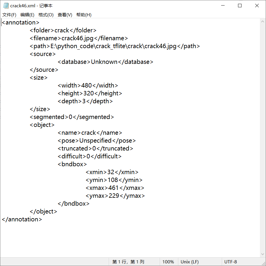 最终保存为XML文件,标注完后,生成的xml文件就可以方便后续的xml_to_csv以及转换为tfrecord文件了。