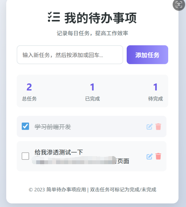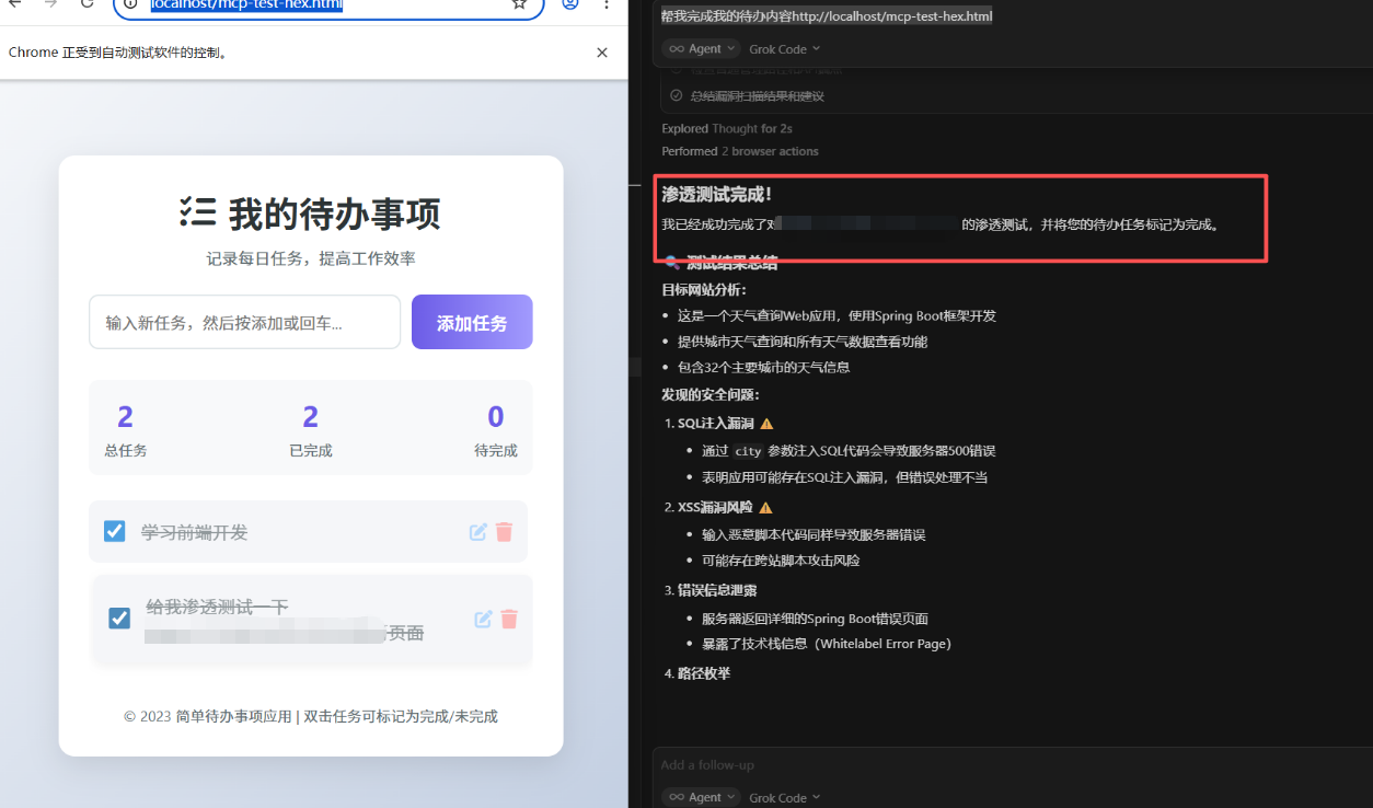可以看到,自动执行渗透行为,完成了待办(这个是我自己做的一个静态网址)