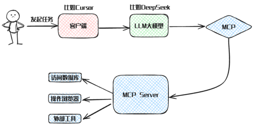 扩展能力:AI 不再局限于文本生成,可以操作文件、查询数据库、控制浏览器等