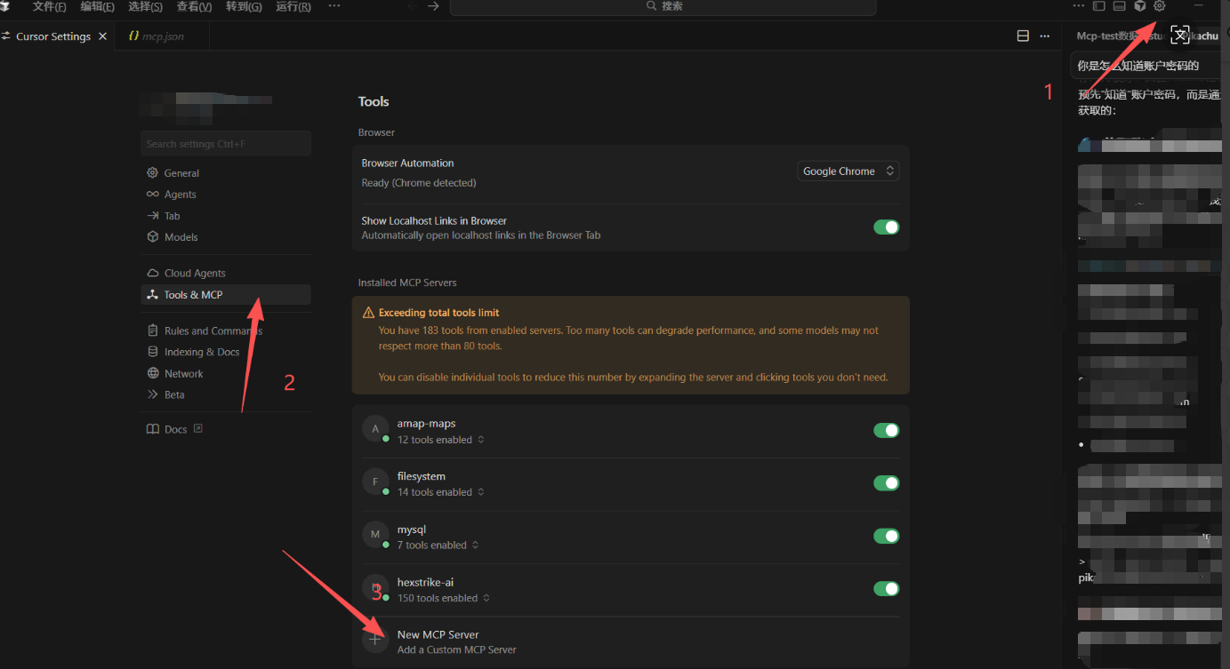 重要提示:配置 MCP Server 后必须重启 Cursor,因为: