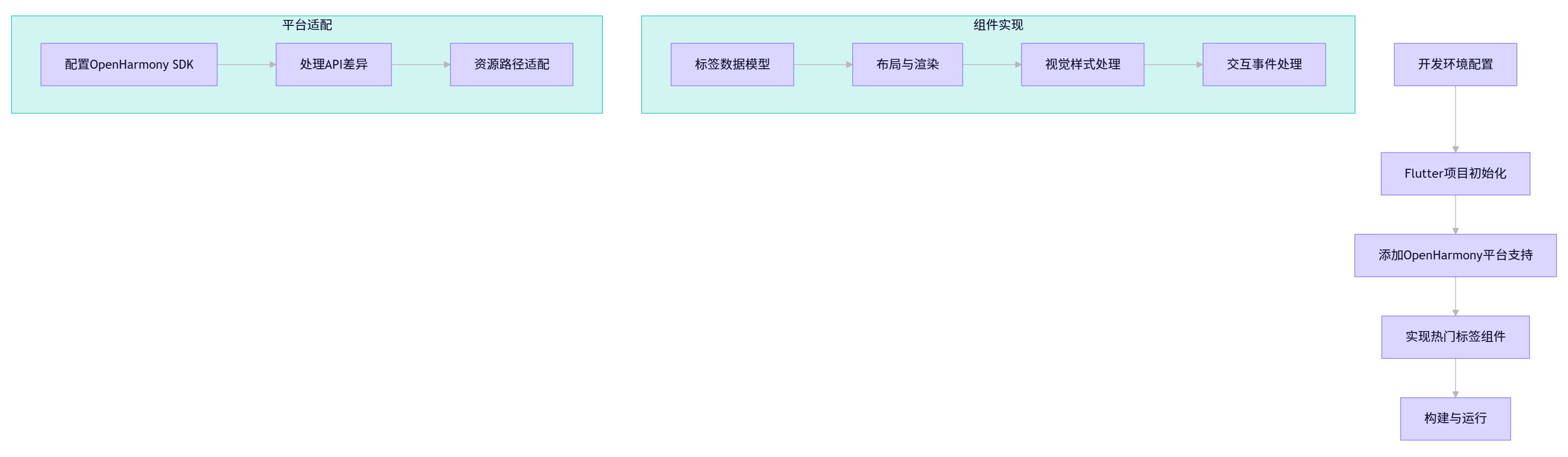 在Flutter直接开发OpenHarmony应用时,需要处理以下关键点: