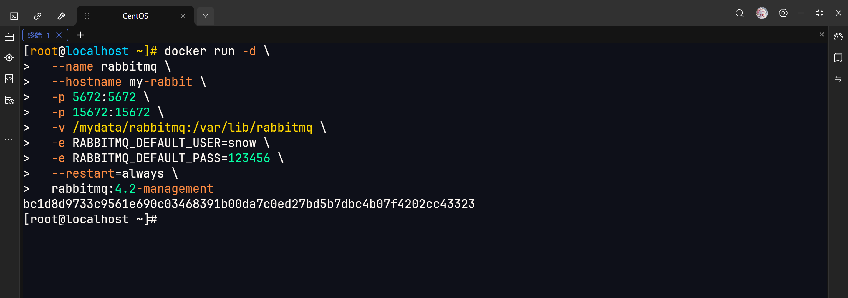 以后你可以直接用 docker stop rabbitmq 或 docker restart rabbitmq 来操作它,而不用去查随机生成的容器 ID