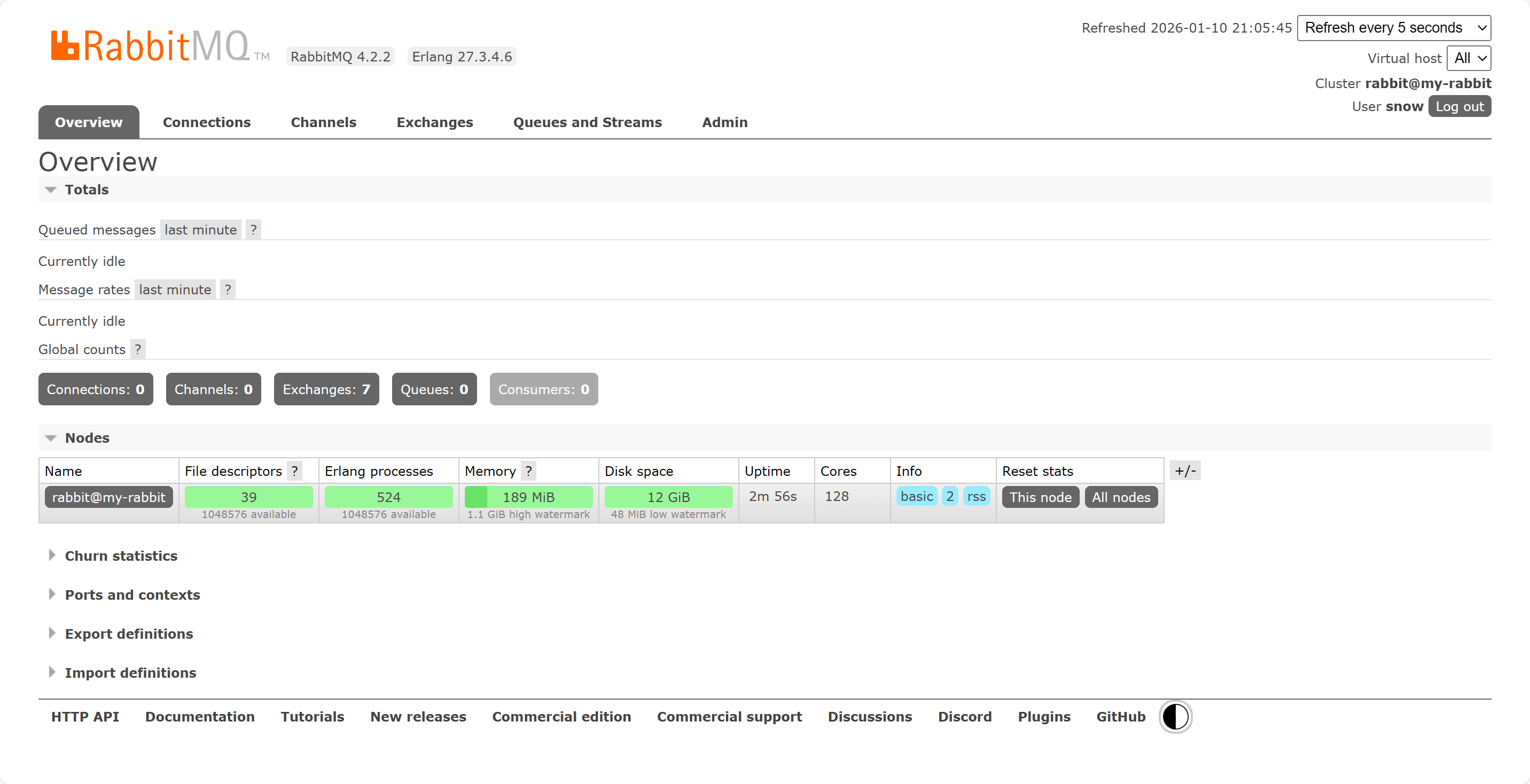 - -e RABBITMQ_DEFAULT_USER=snow: