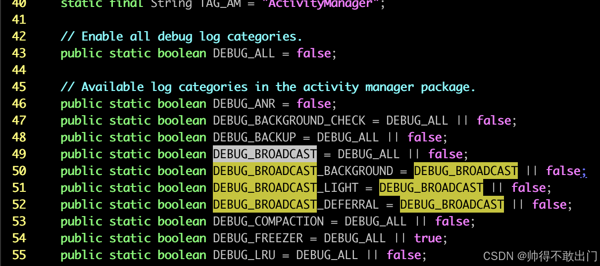 把上图中的DEBUG_BROADCAST改成true,就可以打开: