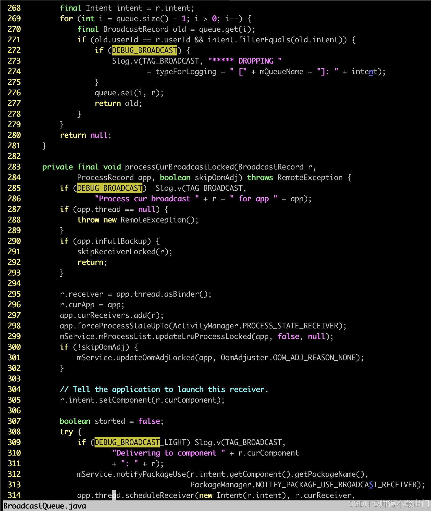 就一行打印,太少了,到sdk中定位BroadcastQueue.java这个类,