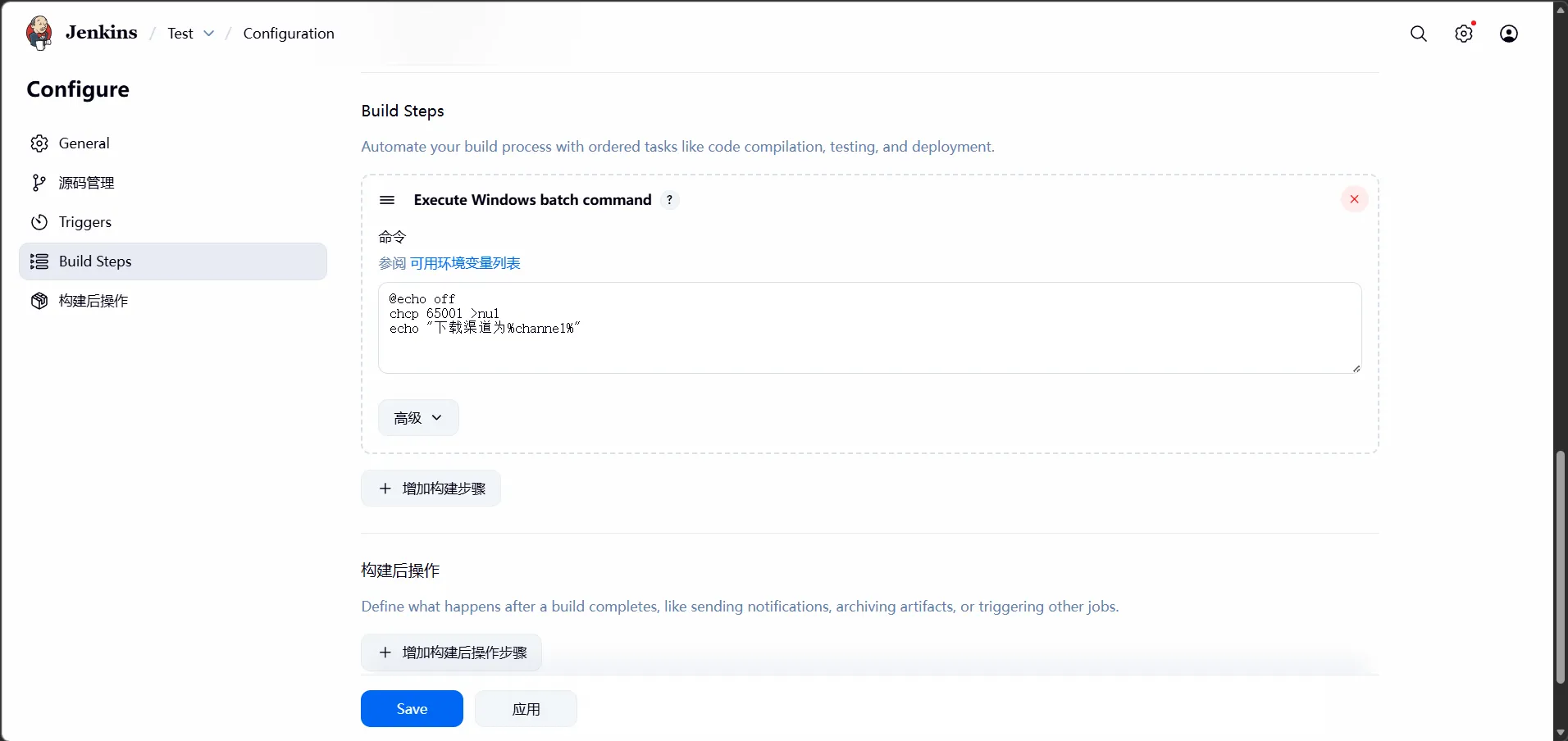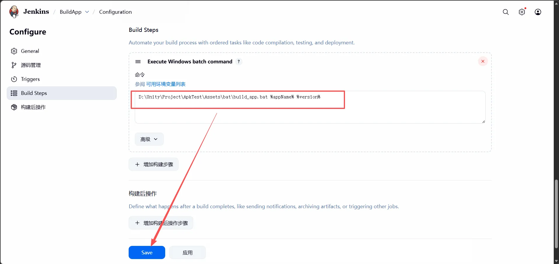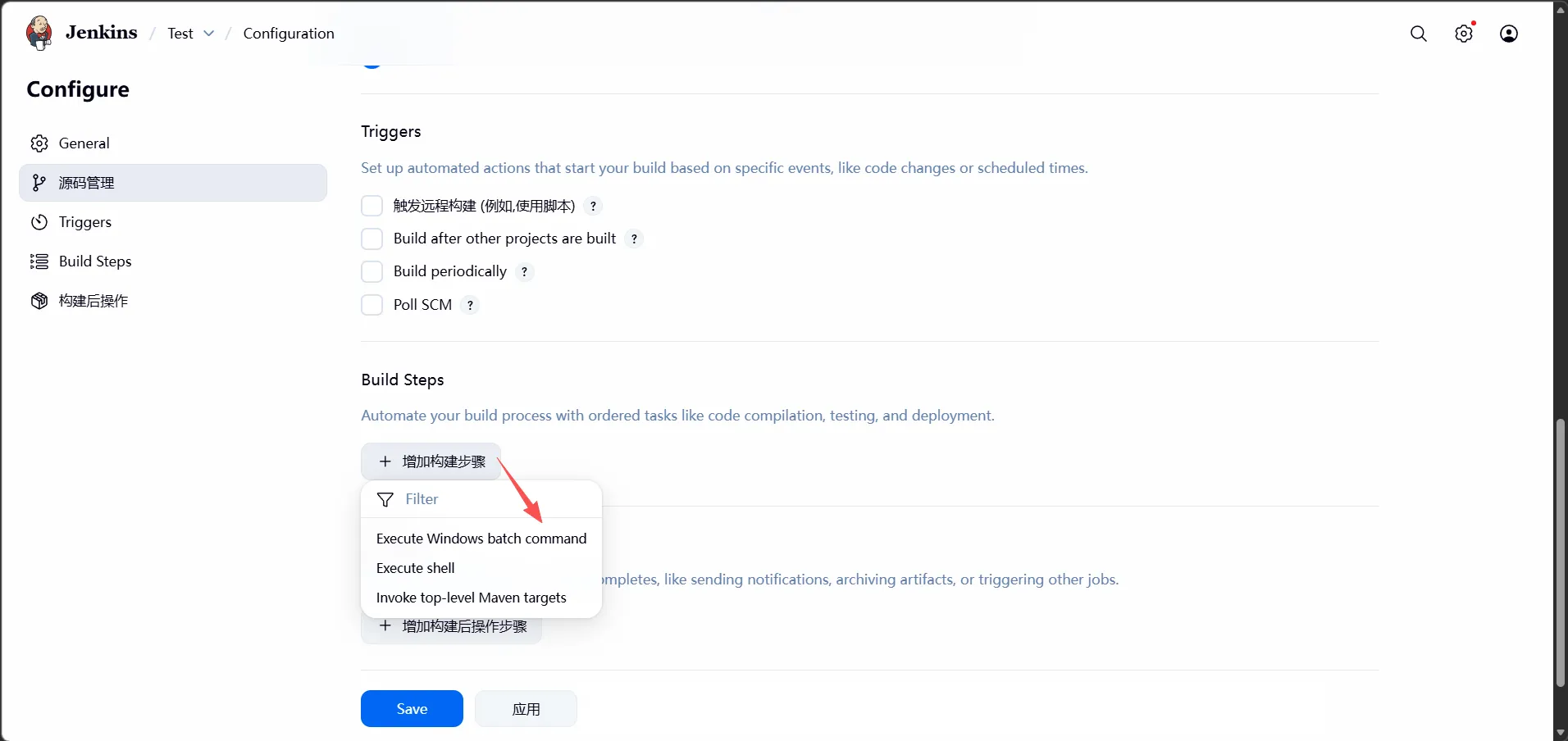 (5)在Jenkins上调用bat脚本