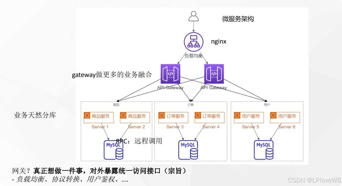 微服务:应用架构的设计模式;微服务架构:将单一的巨型应用拆分为一组小型、独立、松耦合的服务。每个服务专注于一个特定的业务功能,可以独立开发、部署、扩展和替换。这极大地提升了敏捷性和可维护性。