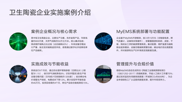 前面我们详细了解了卫生陶瓷生产的各项节能方案、合规管理措施。接下来进入"应用案例与效益分析"环节,此部分价值在于通过实际案例,直观展现方案成效。后续我们将看到具体企业如何应用,以及带来的能耗、成本等方面的显著效益。