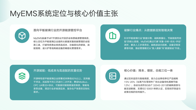 各位读者,大家好!我今天要向大家介绍MyEMS开源能源管理系统。当前,平板玻璃行业面临着高能耗、数据管理滞后、环保压力大等诸多挑战,绿色低碳生产迫在眉睫。