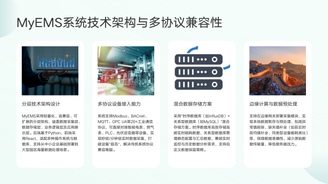 MyEMS系统在多场景适配能力与技术先进性方面表现卓越。在工业级协议兼容与设备接入上,它支持20+工业通信协议,能对接多种设备,实现秒级/分钟级实时数据采集,打破设备"孤岛",为节能优化提供数据支撑。