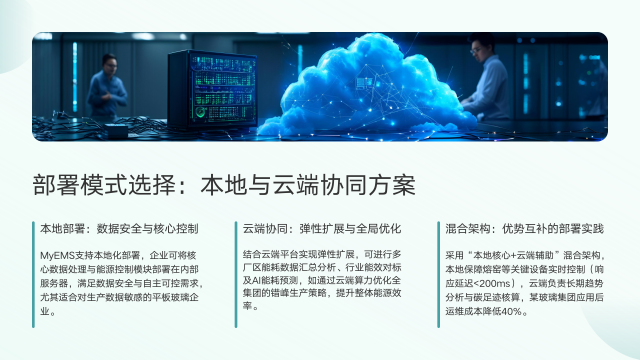 MyEMS系统为企业提供了三种部署模式,各有优势。本地部署能满足数据安全与自主可控需求,企业可将核心数据处理与能源控制模块部署在内部服务器,对生产数据敏感的平板玻璃企业采用此模式比较合适。