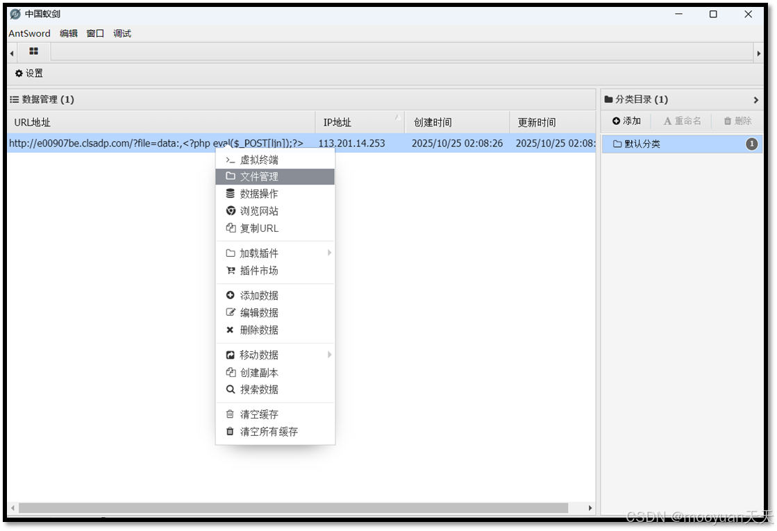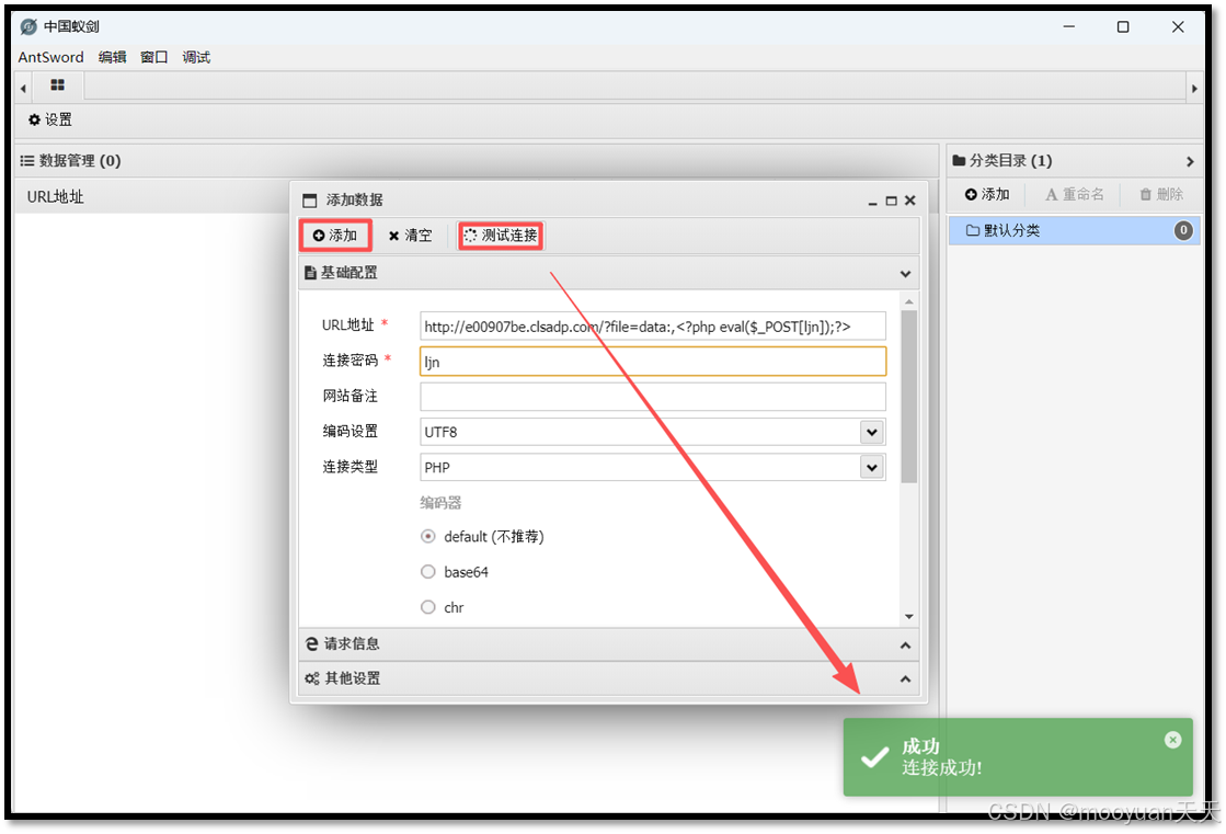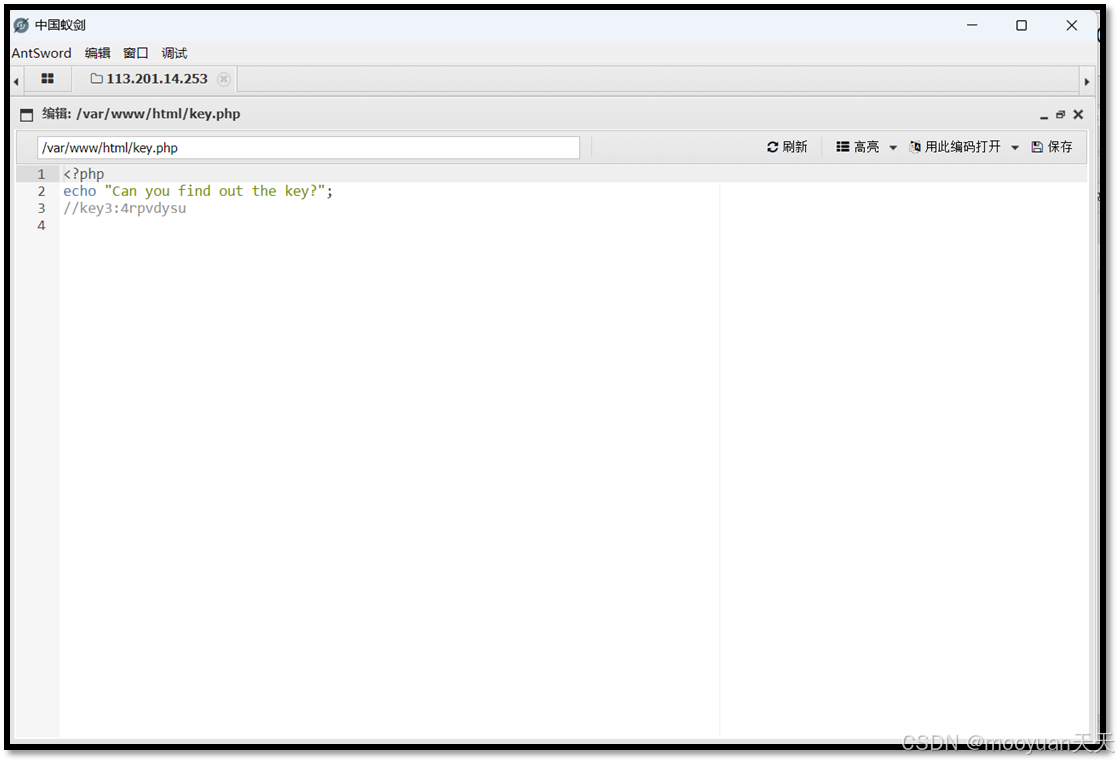 - 3)通过data协议植入webshell并用蚁剑连接获取key。