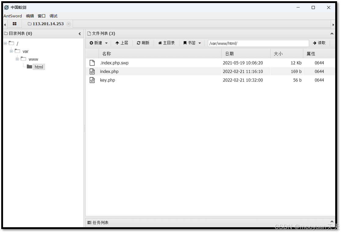在当前目录下发现key.php ,如下所示双击打开后即可获取到key值。
