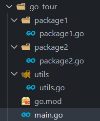 在go_tour目录下有三个包package1和package2和utils, 代码目录如下:
