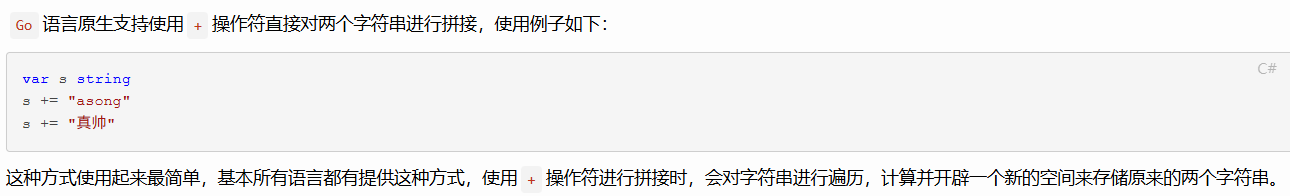 如果进行少量的字符串拼接时,直接使用 + 操作符是最方便也算是性能最高的,就无需使用 strings.builder
