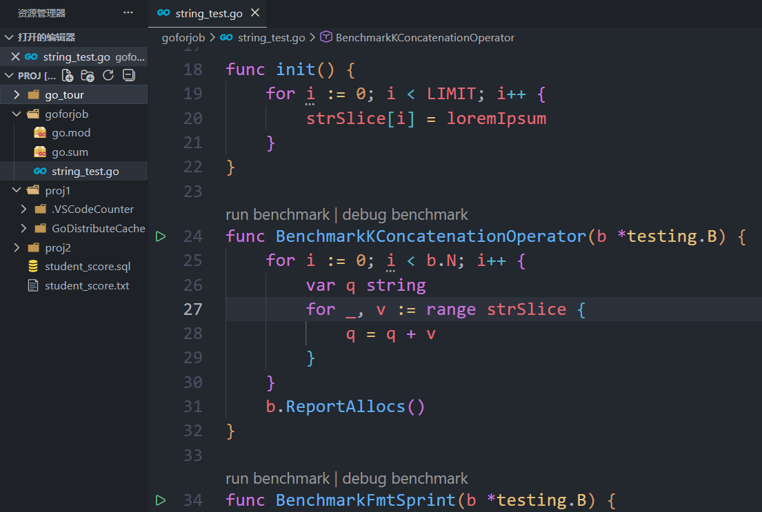 采用testing包下benchmark测试其性能
