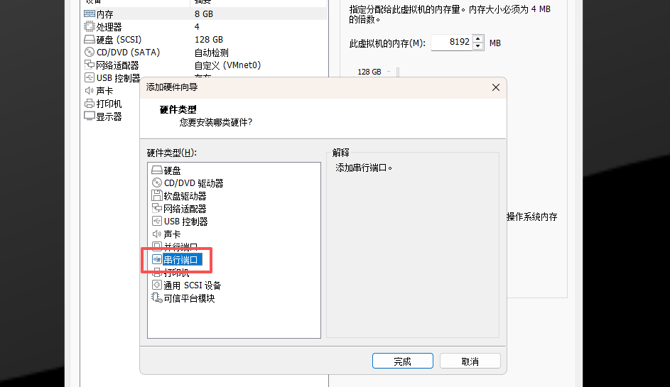 VMware虚拟机默认是没有添加串口的,当然如果已有串口可跳过这一步。
